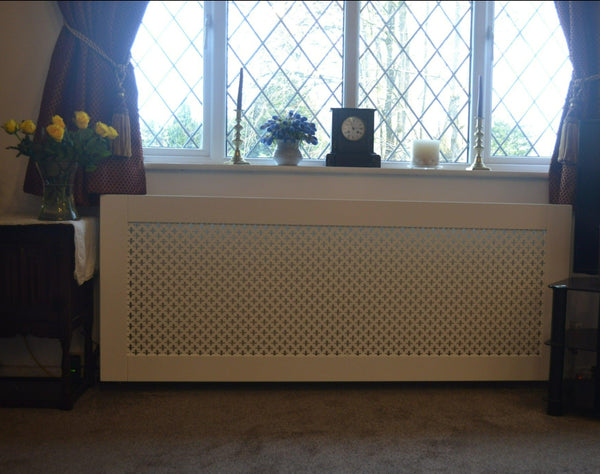 Classic Radiator Covers with strong 18mm thick and 10cm wide Frame and decorative perforated grille screening panel for maximum heat efficiency. The stylish GEM motif design of our Classic panel range is simple, yet stylish with square shapes integrated within each other to create an intriguing and inspirational design.