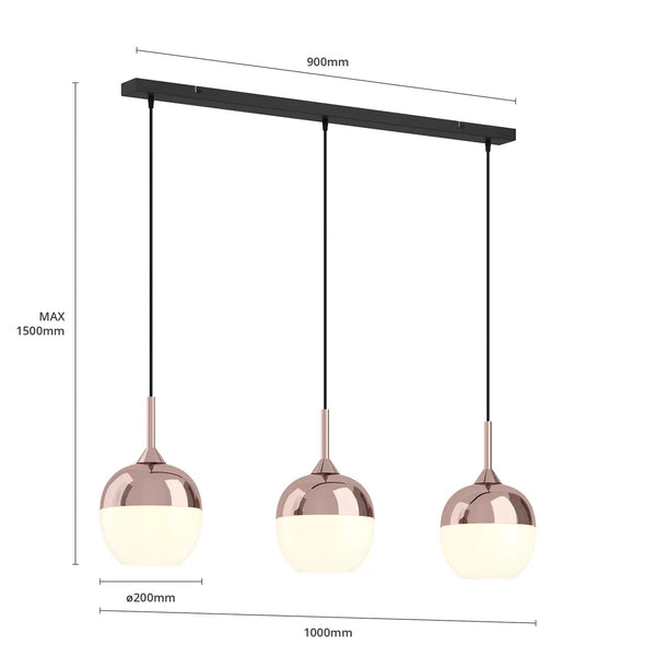 Blending modern and classic design, these fashionable on-trend Lights are a style statement for any Bedroom, Hall, or Study. At the same time the 3 pendants suspended at varied heights from a linear ceiling rose makes it perfect to use above kitchen islands, breakfast bars, or dining tables.