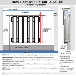 See more information on our Measuring Instructions page or use this sheet to add all the measurements of radiators in different rooms or areas and email it back to us and we will recommend the size of your Radiator Cabinet.