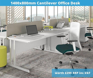 - 1400x800mm Cantilever desk White legs with White desktop - worth £299 RRP inc. VAT