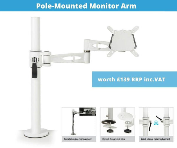- Pole-Mounted Monitor Arm for Single screen with quick-release height adjustment and detachable VESA plate - worth £139 RRP inc. VAT