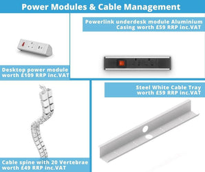 - Powerlink under desk module in Silver Aluminium Casing, 4 UK Power Sockets with 5a Fuses, GST Male and Female Connectors, 2m Power Lead, Fixing Brackets (Pair) and Hook and Loop Fixings Included - worth £59 RRP inc. VAT