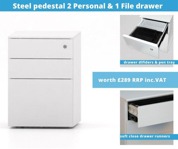 - Steel pedestal 2 Personal drawers 1 File drawer Central Locking including Pen Tray and Drawer Dividers White - worth £289.99 RRP inc. VAT