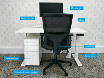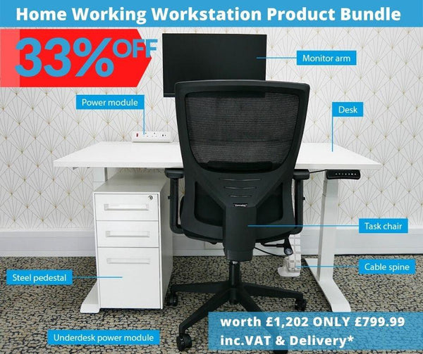 Home Working Workstation Bundle with Desk Monitor Arm Office Chair Pedestal & Cable Management